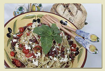 - Polenta Timbale with Roasted Red Pepper, Shitake Mushrooms, Spinach, and Kalamata Olives with a Sun dried Tomato and Caper Relish